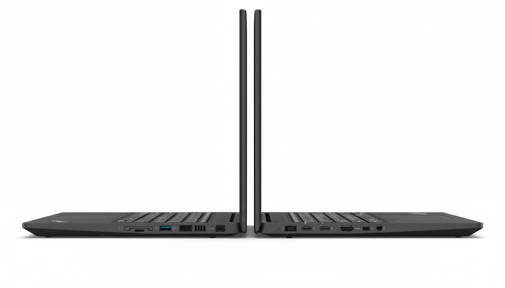 منفذا USB-A 3.2، ومنفذا Thunderbolt 3 USB-C مع دعم Power Delivery وDisplayPort، ومنفذ HDMI 2.0 للشاشات، وقارئ بطاقات SD، ومنفذ سماعة/مايك 3.5mm، ومنفذ قفل أمان Kensington، مع إمكانية وجود منفذ Nano-SIM في الإصدارات الداعمة للـ WWAN.