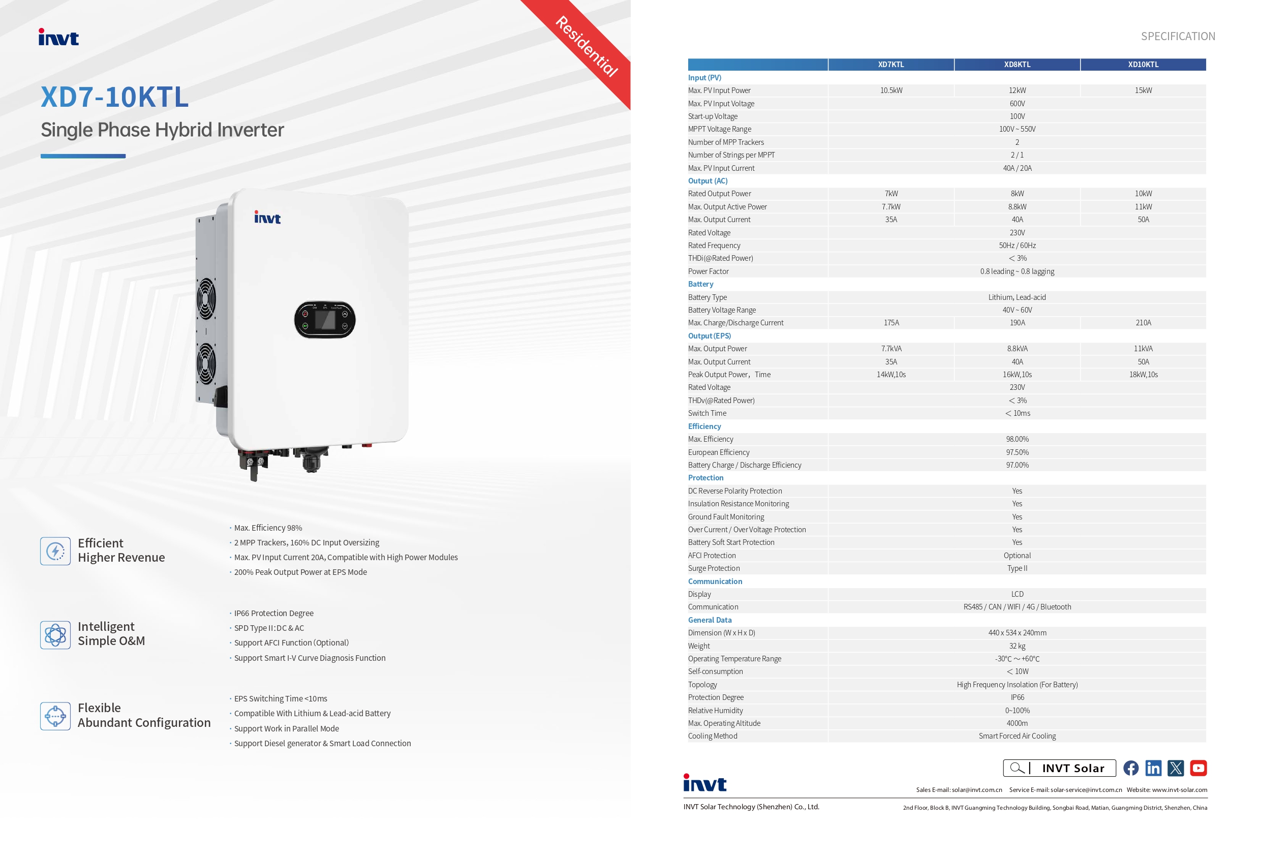 جهاز INVT Hybrid Inverter 10KW هو عاكس طاقة شمسي هجين مخصص للمنازل والمشاريع الصغيرة، يدعم العمل مع الألواح الشمسية والبطاريات والشبكة بنفس الوقت لتوفير طاقة مستقرة. يتميز بكفاءة عالية تصل إلى حوالي 98% مع وجود 2 MPPT لتحسين الإنتاج، ويدعم بطاريات ليثيوم ورصاص مع إمكانية التشغيل عند انقطاع الكهرباء خلال أقل من 10ms.