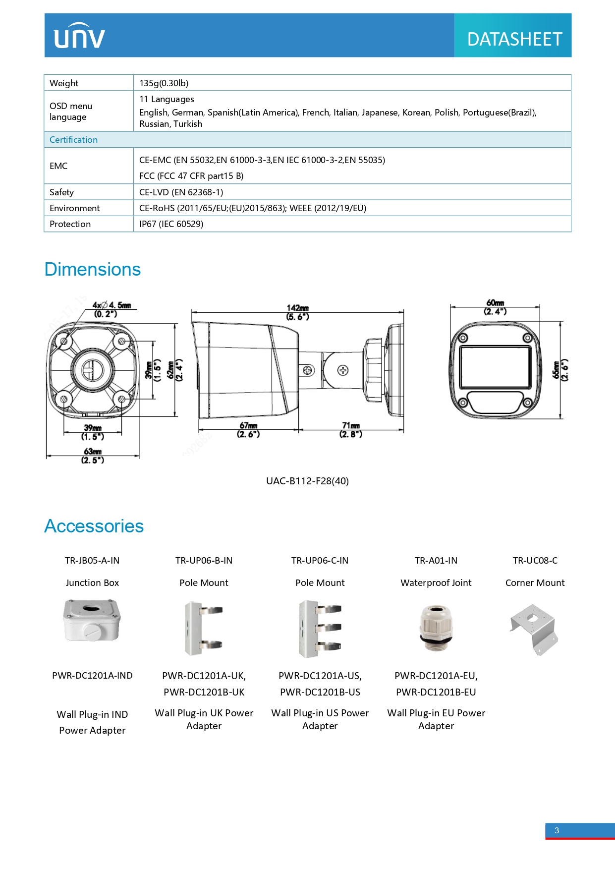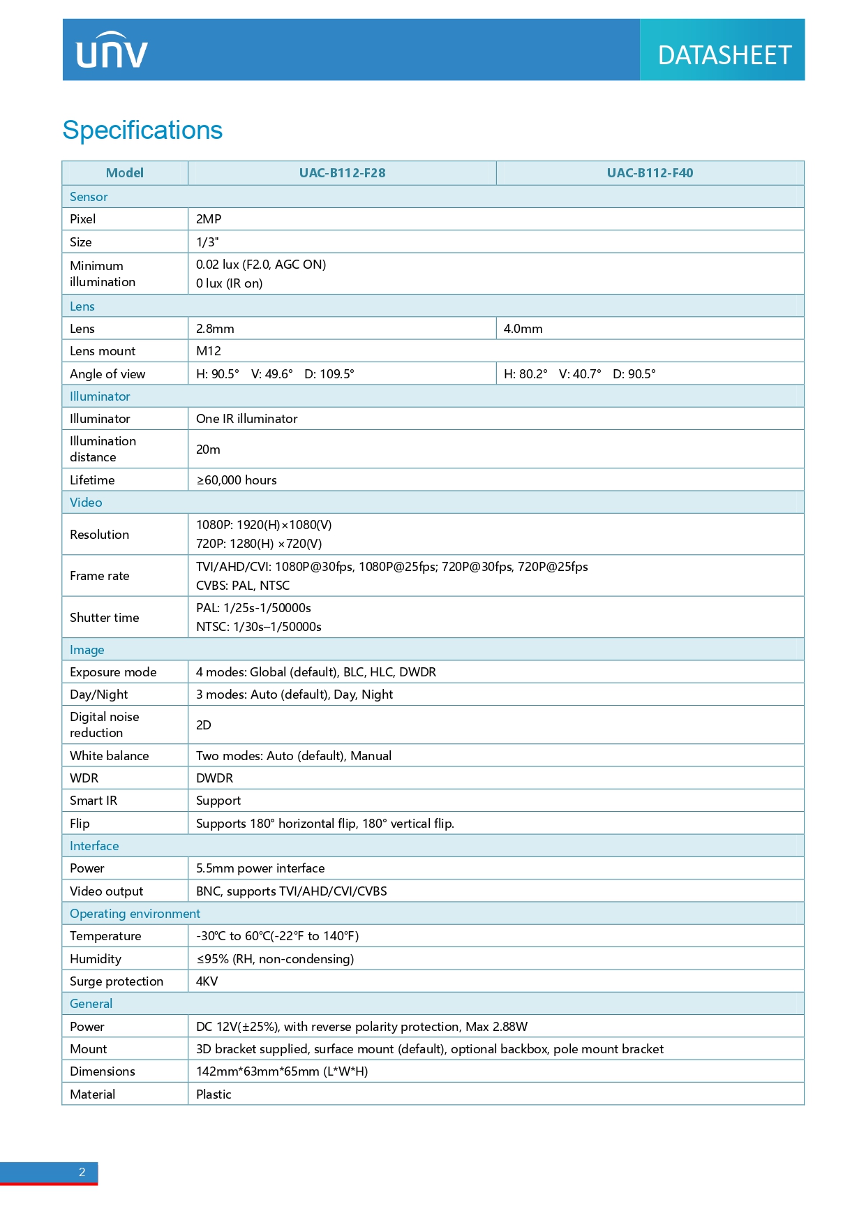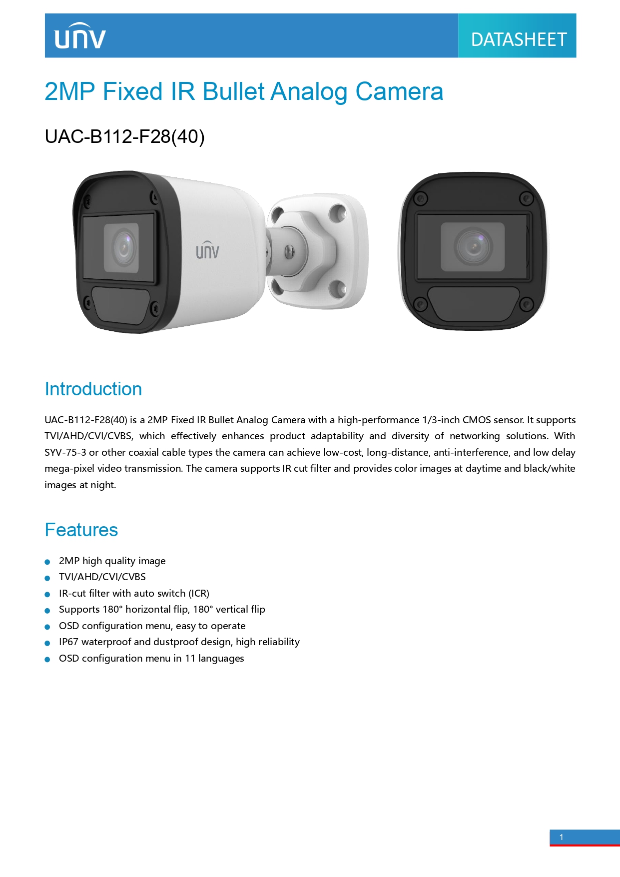 • صورة عالية الجودة بدقة 2 ميجابكسل • يدعم صيغ TVI/AHD/CVI/CVBS • يدعم الإضاءة البيضاء، وعرض الصور بالألوان على مدار الساعة • يدعم قلب الشاشة أفقيًا ورأسيًا بزاوية 180 درجة • قائمة إعدادات سهلة الاستخدام • تصميم مقاوم للماء والغبار بمعيار IP67، يتميز بموثوقية عالية قائمة إعدادات متوفرة بـ 11 لغة