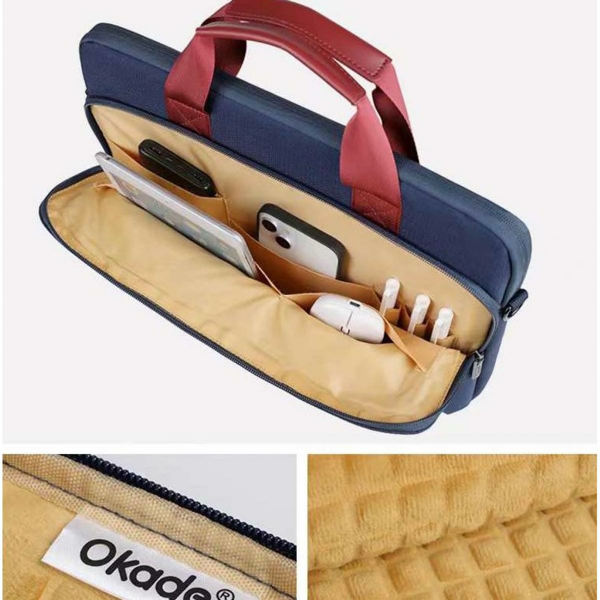 حقيبة يد OKADE T70 أنيقة وعملية، مخصصة للأجهزة المحمولة حتى 15.6 بوصة. تحتوي على جيوب متعددة لتنظيم الملحقات والمستندات. مصنوعة من خامات متينة وخفيفة لتوفير حماية أثناء التنقل.