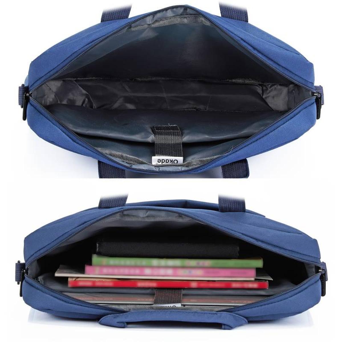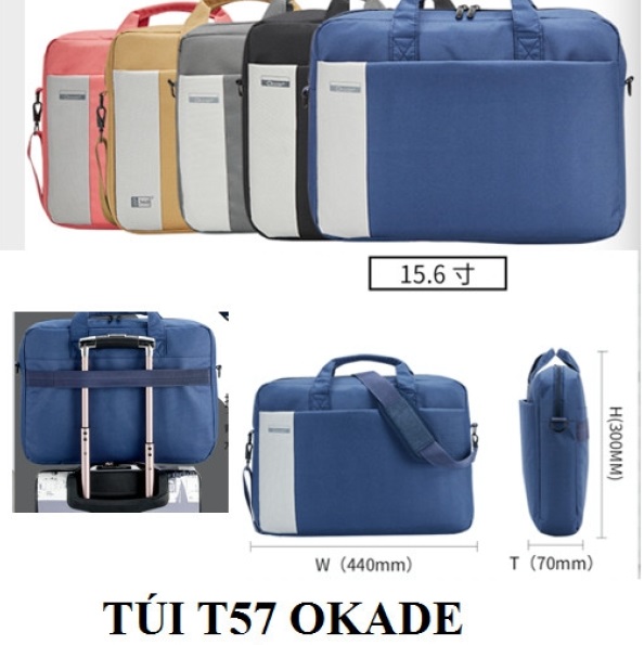حقيبة OKADE T57 لابتوب حتى 15.6 بوصة، مواصفاتها باختصار: مقاومة للماء وخامة قوية مضادة للخدوش، بها حجرتان رئيسيتان + جيوب للإكسسوارات. أبعاد تقريبية: العرض 44 سم × الارتفاع 30 سم × السماكة 7 سم.