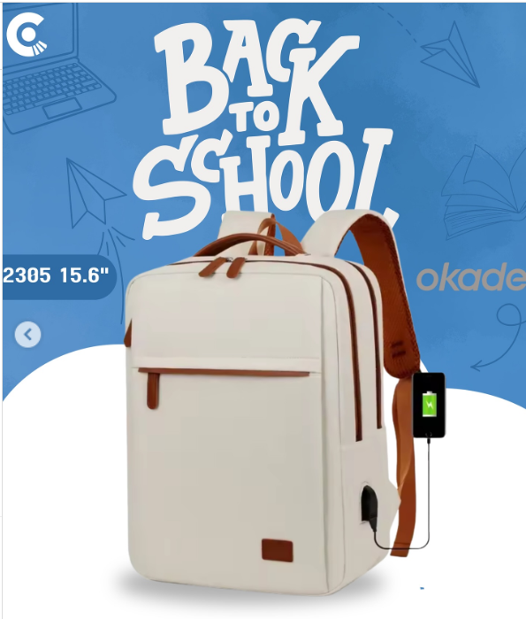 حقيبة OKADE S2305 لحجم لابتوب 15.6 بوصة. مقاومة للماء مع غلاف خارجي يحمي الجهاز من الرطوبة. مزودة بحجرة مبطنة للابتوب + جيوب للإكسسوارات لتحسين التنظيم.