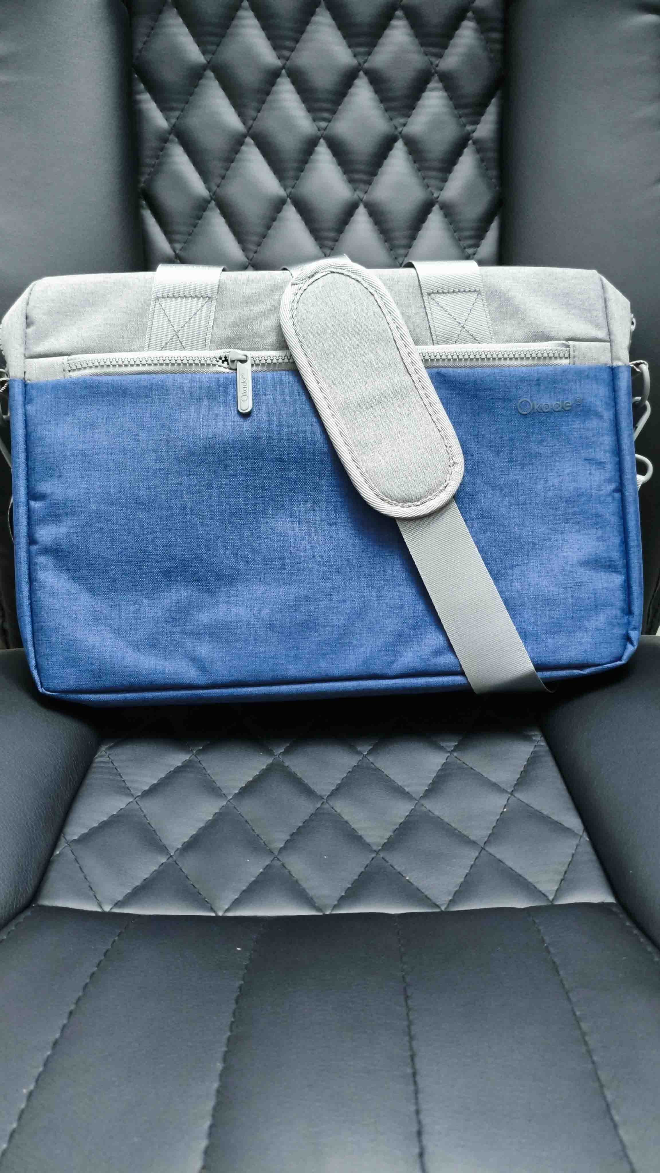 حقيبة Okade T62 مقاس 14 بوصة مقاومة للماء، مبطنة بطبقة عازلة للصدمات، وتحتوي على حزام كتف ومقابض للحمل بسهولة.