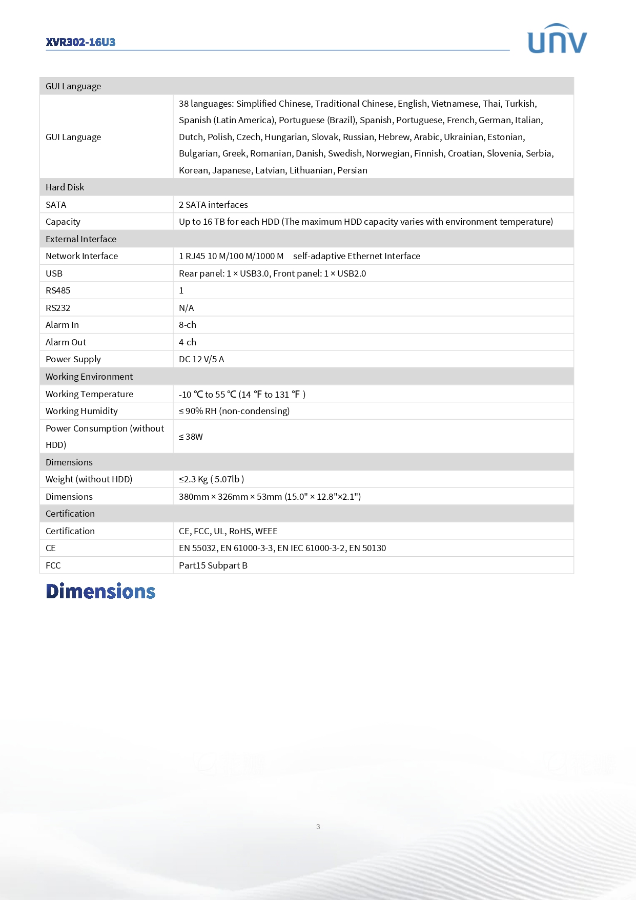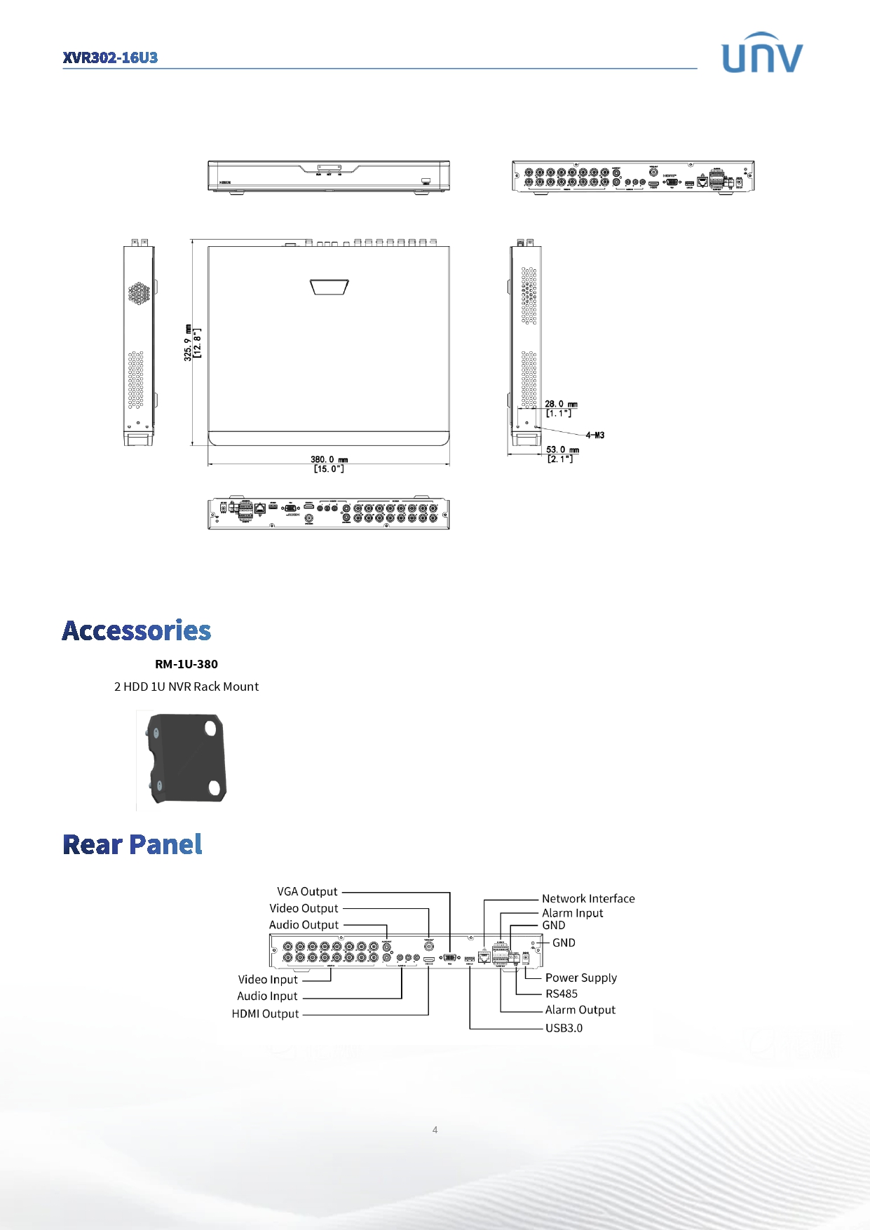 جهاز تسجيل فيديو هجين Uniview يدعم 16 قناة تناظرية (BNC) و16 قناة IP كحد أقصى، يوفّر ضغط H.265/H.264 وإخراج HDMI بدقة 4K وVGA بنفس الوقت، ويحتوي على فتحتي SATA لتخزين يصل إلى 16 تيرابايت لكل قرص.
