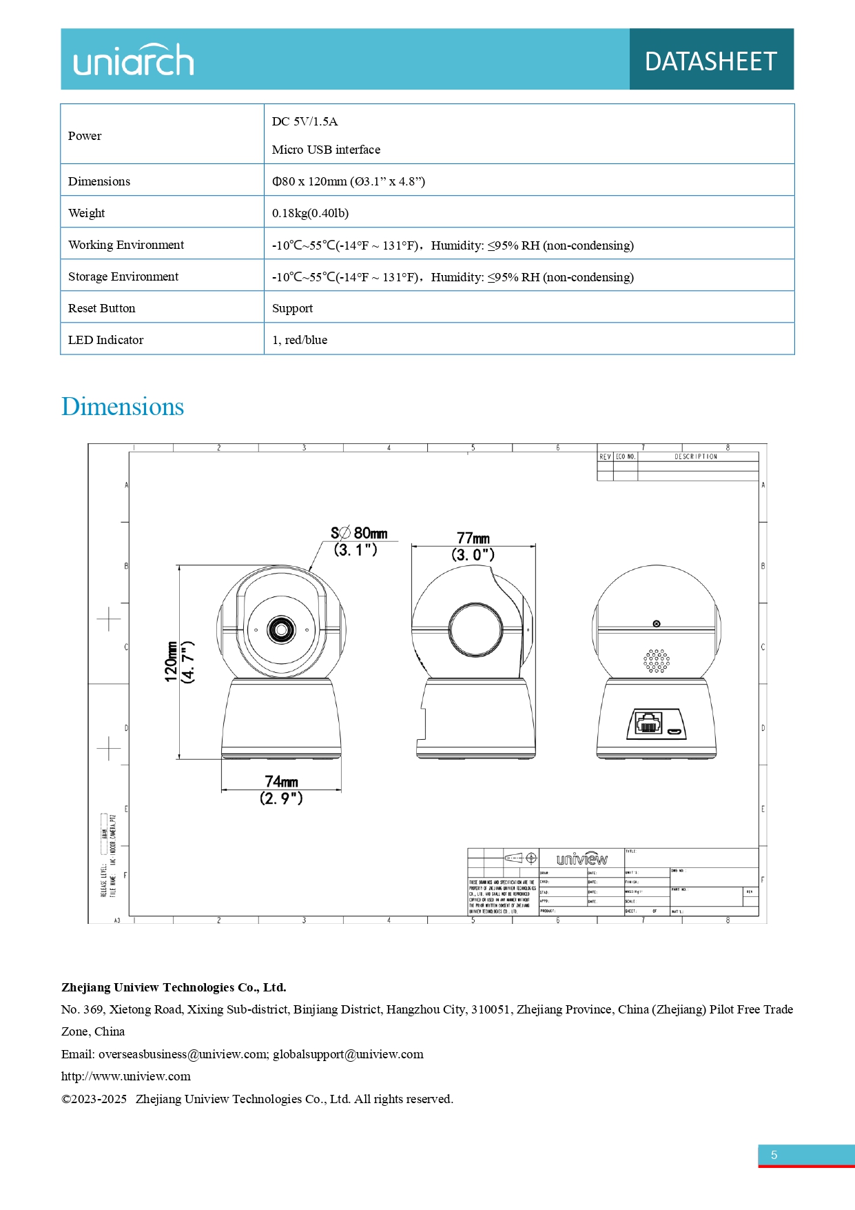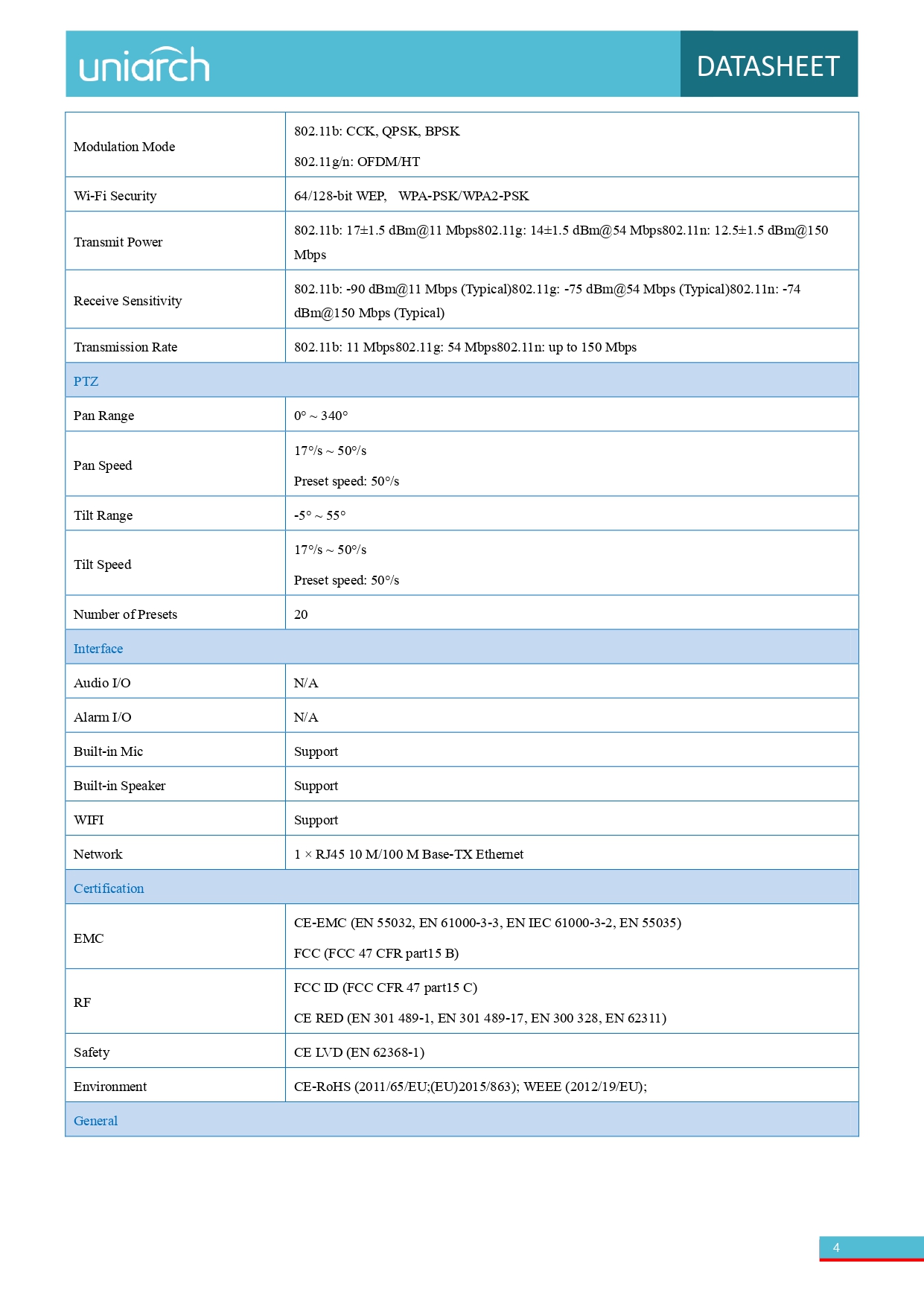 كاميرا ذكية داخلية بزاوية دوران Pan-Tilt (PT) من Uniarch (Uniview)، بدقة 2 ميجابكسل، وتدعم رؤية ليلية (IR) حتى 10 أمتار، وتتضمن ميزات مثل تتبّع الحركة، متعدد طرق الكشف (حركة، صوت، جسم الإنسان)، وصوت ثنائي الاتجاه عبر تطبيق Uniarch/EZCloud
