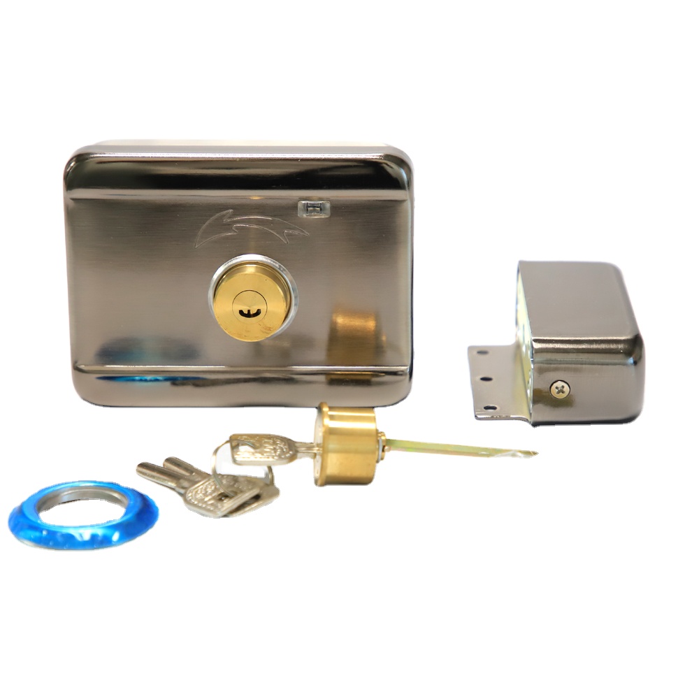 قفل باب كهربائي متين مع مفتاح ميكانيكي، يوفر أمانًا عاليًا وسهولة في التركيب والاستخدام. مناسب للأبواب الخشبية والمعدنية، يأتي مع جميع ملحقات التثبيت ودليل التشغيل.